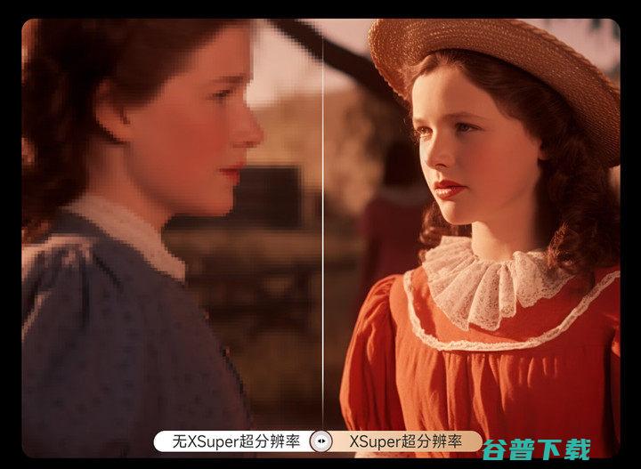 除去怀旧电影系列,部分本地资源画面质量良莠不齐,所以也可能会遇到画面不高清的情况,如果要在大屏上观看,分辨率便无法达到正常水平,尤其是使用投影仪观看,投射画面一般在百吋以上,部分设备更是能达到300吋,这样对画面分辨率的要求也就更高。此时就需要超分辨率技术的介入,使用后用户能快速看到高清影片,无需费力去找更多资源。目前搭载该项技术的大屏设备相对稀缺,大部分仅支持对画面色彩及细节进行处理,无法智能提升图像的分辨率,而国内配备超分辨率技术的智能投影当前仅有当贝X5,该款投影仪在MT9679芯片的支持下,可利用更高效的AI算法,智能分辨不同类型影片,逐帧修复重塑画质。下图为设备开启XSuper超分辨率功能后的对比效果: