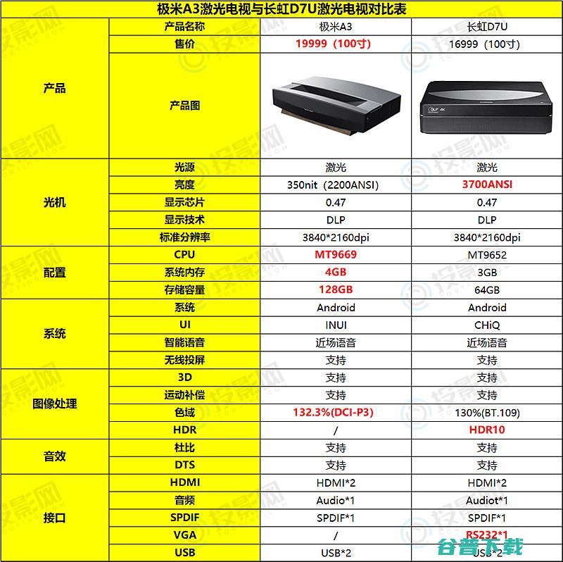 极米A3激光电视和长虹D7U激光电视区别