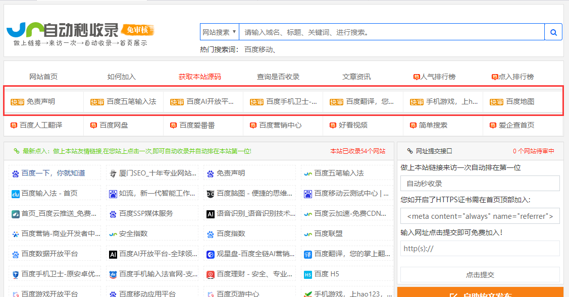 100元/月服务介绍:采用本站强制收录通道,成功购买将自动强制通过审核并显示,支持首页网址和内页网址的收录。