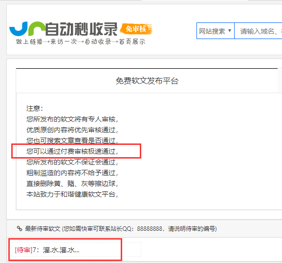 100元/站服务介绍:当软文发布后,您可以通过本服务自助付费软文审核极速通过。