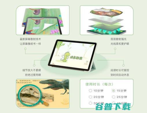 成长秘密在其核心产品——成长秘密儿童全科阅读护眼平板的研发上则把护眼做到了极 致。据其负责人介绍,成长秘密平板采用了双重护眼技术,在硬件设备上采用了专业护眼屏,采用新的屏幕散射技术,层层散射强光,真实还原纸质书高清质感,让孩子在进行电子阅读时也拥有像阅读纸书一样的体验,很大程度呵护孩子的双眼。在软件上则采用了使用时长管控措施,家长在家长圈可以控制孩子使用平板的阅读时长,双向管控,更好地保护孩子的眼睛。