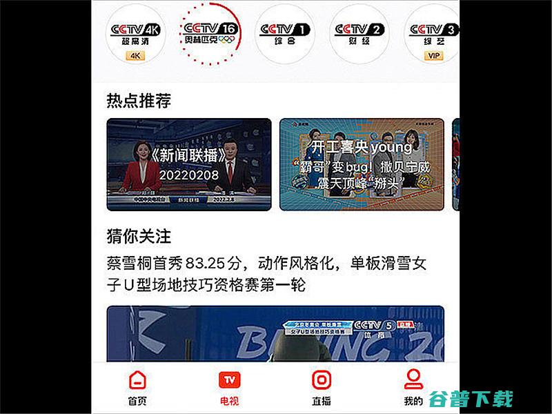 3、播放央视频直播在手机上打开央视频,选择电视直播播放;