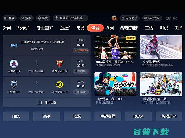 2.进入体育专题然后进入云视听极光的体育专题页面;