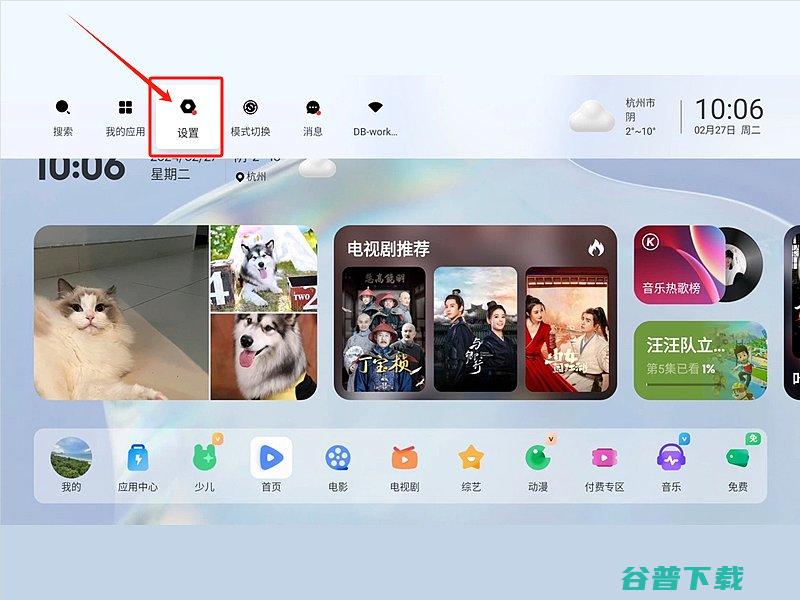 1.打开投影设置在当贝D6X高亮版主界面找到设置并点击打开;