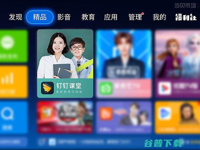 品牌型号:小米电视5系统版本:MIUITV3.0软件版本:钉钉课堂1.1.0、当贝市场4.2.6钉钉目前只有钉钉课堂电视版,可以通过当贝市场下载,以下是在电视上下载钉钉的具体操作步骤。