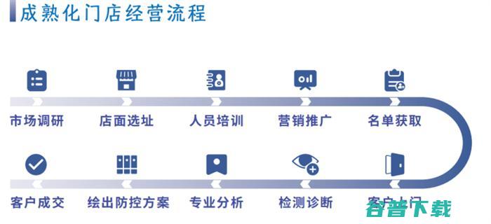 门店运营训练+落地实操,每周培训,精 品课程,提升防控知识以及销售能力。每月汇总报表,多方位了解门店经营。每季表彰,完整的荣誉体系,打造优 秀的团队氛围。每年总结复盘,深度总结改进提高。