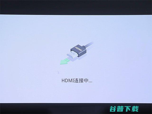 先将HDMI信号线连接电脑和信号接收设备,如投影仪等;