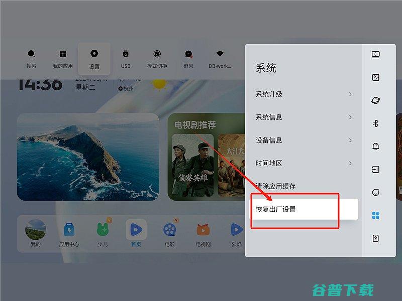 2.选择恢复出厂在系统设置界面找到并选择恢复出厂设置;