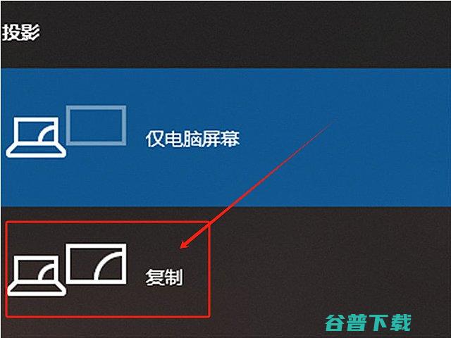 2.更换投影设置在电脑上按下Windows+P打开投影设置,更换为复制;